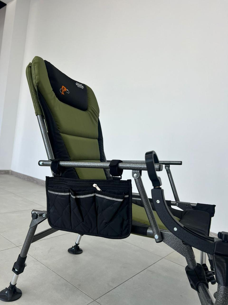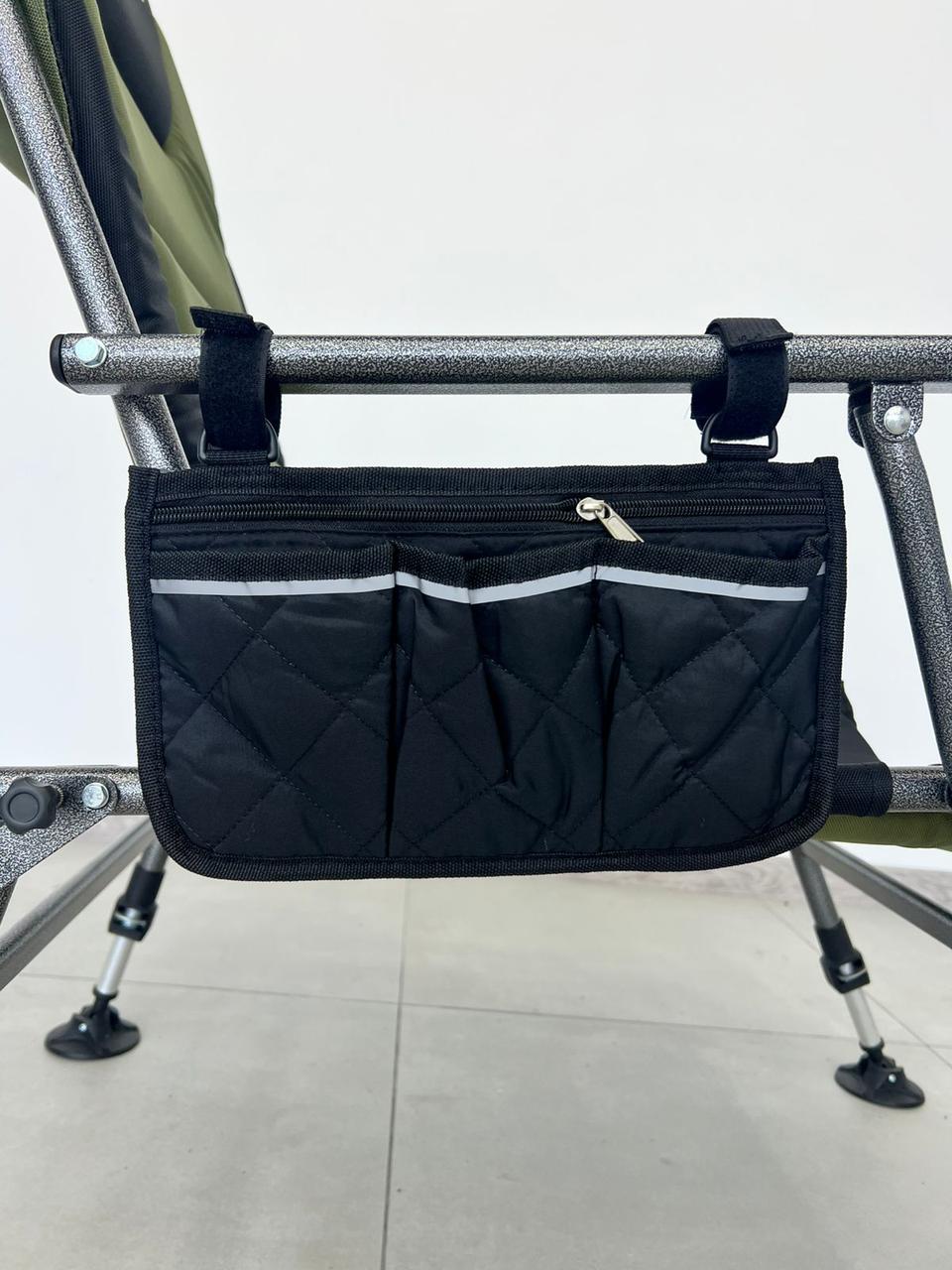 Ця сумка для риболовлі легко кріпиться на підлокітник рибальського стільця або крісла, що робить її незамінним аксесуаром як для професійних рибалок, так і для любителів комфортного відпочинку.