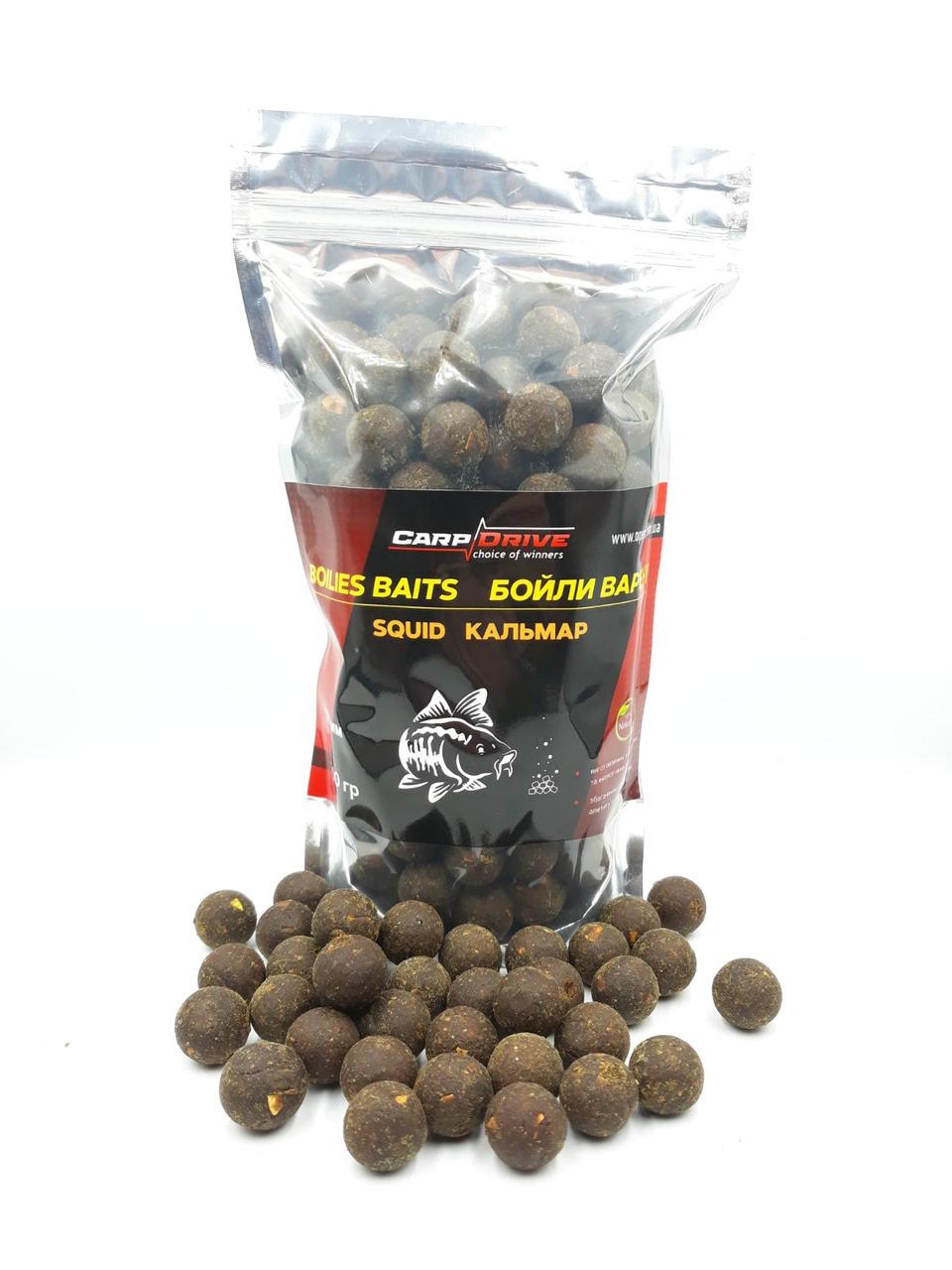 Варені коропові бойли Кальмар 18 мм 500 г з насиченим морським ароматом для стабільної роботи на точці підходять для коропа та амура