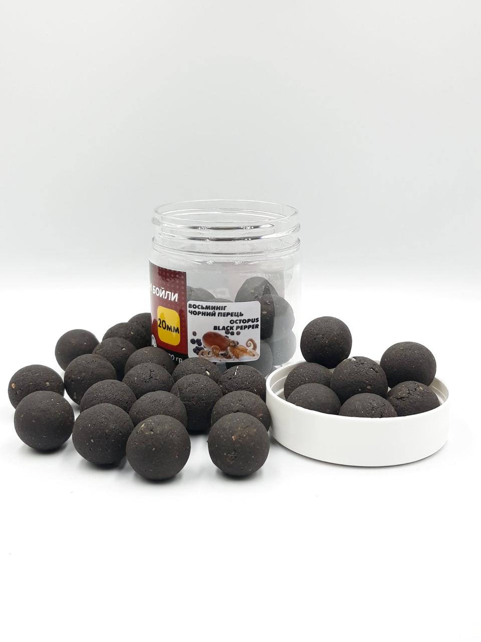 Розчинні насадкові бойли Carp Drive Восьминіг Чорний Перець 20 мм 100 г Пікантний морський профіль для складних умов Швидко розчиняються і дають виразний шлейф біля дна