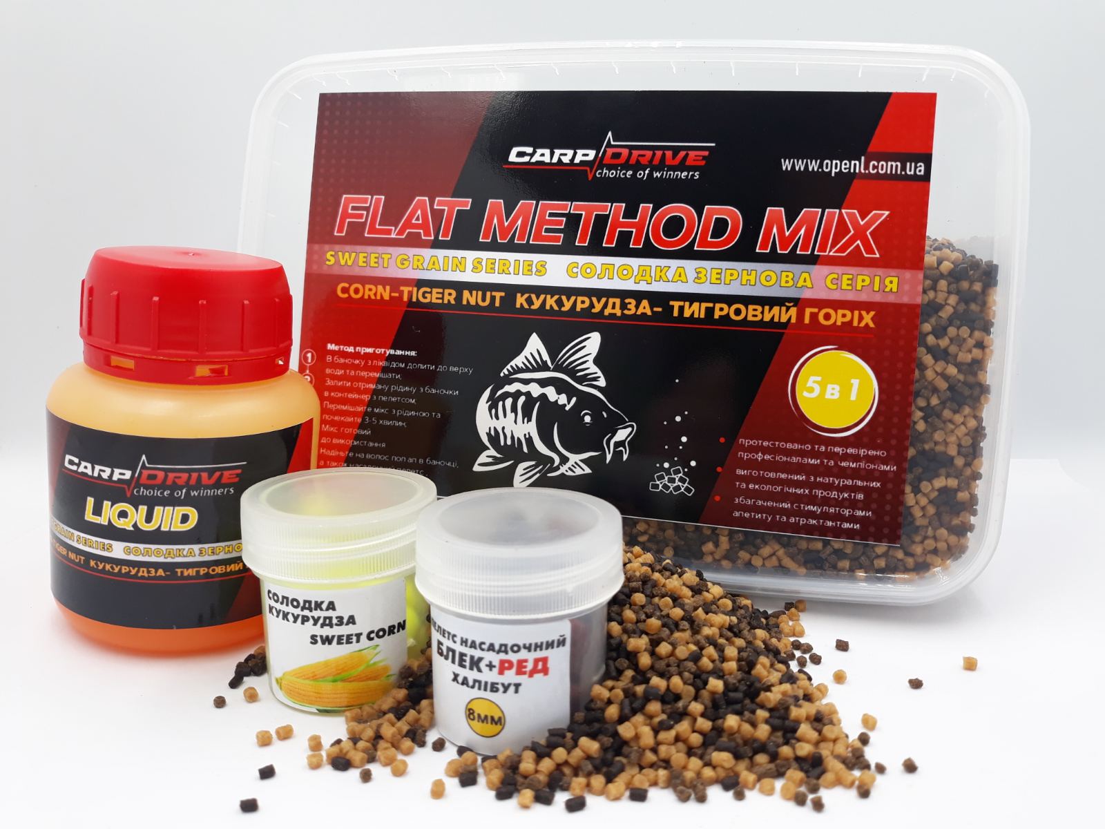 Флет метод Carp Drive мікс Corn Tiger Nut 5 в 1 солодка зернова кукурудза тигровий горіх пелетс 2 мм