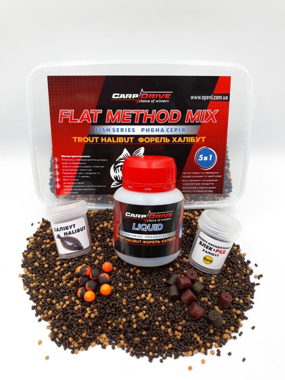 Флет метод мікс Carp Drive Trout Halibut форель халібут 5 в 1 з пелетсом 2 мм для активного шлейфу аромату та утримання риби на кормовій плямі