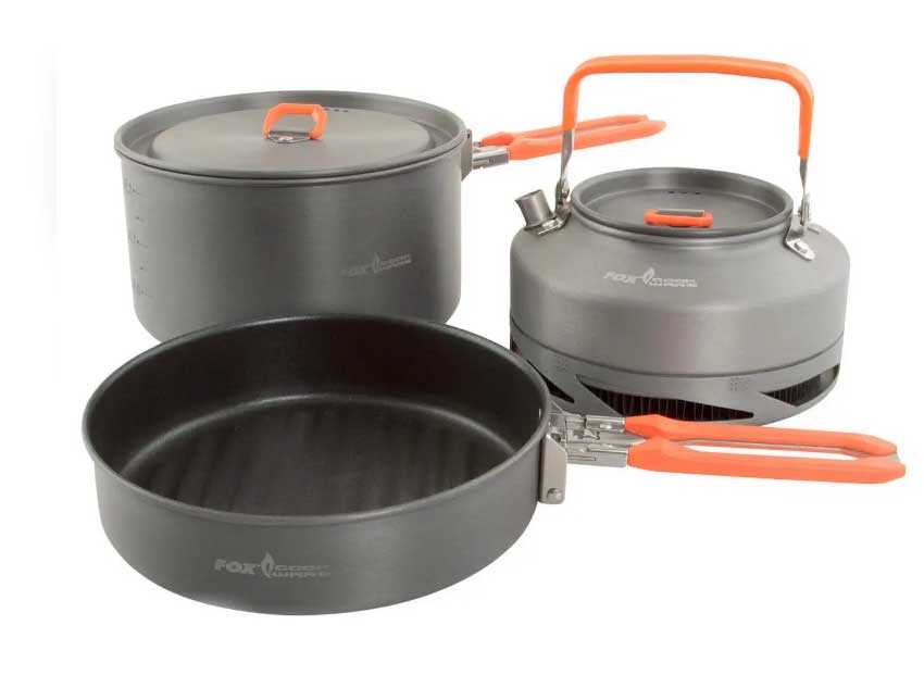 Fox Cookware набір посуду 3 предмети сковорода каструля чайник 900 мл антипригарний алюміній — насадка для коропової риболовлі.