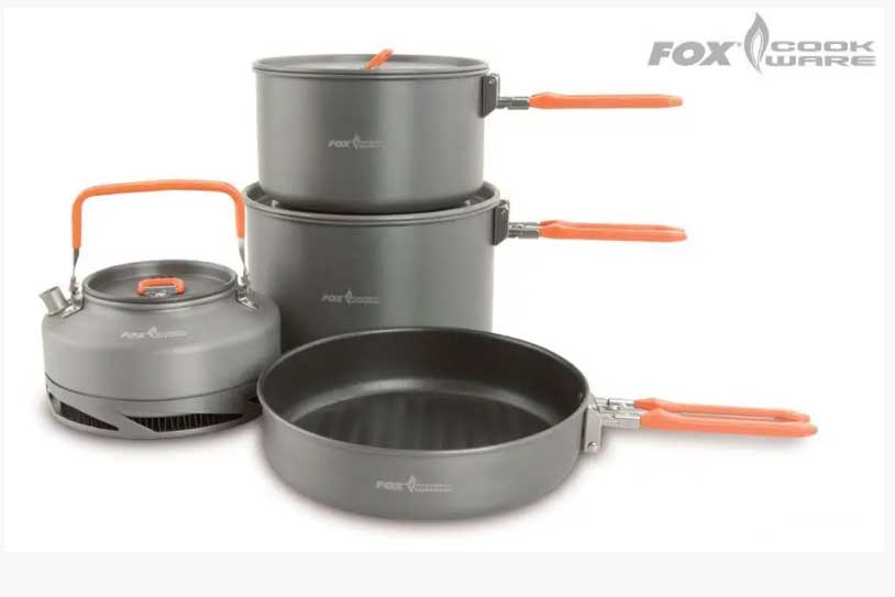 Fox Cookware набір посуду 4 предмети сковорода 2 каструлі чайник 900 мл антипригарний алюміній — насадка для коропової риболовлі.