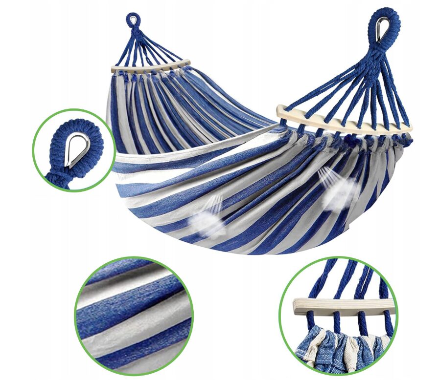 Гамак витримує до 200 кг, що дозволяє комфортно відпочивати двом людям.