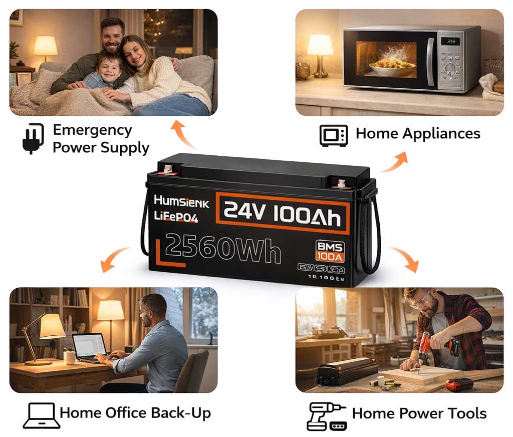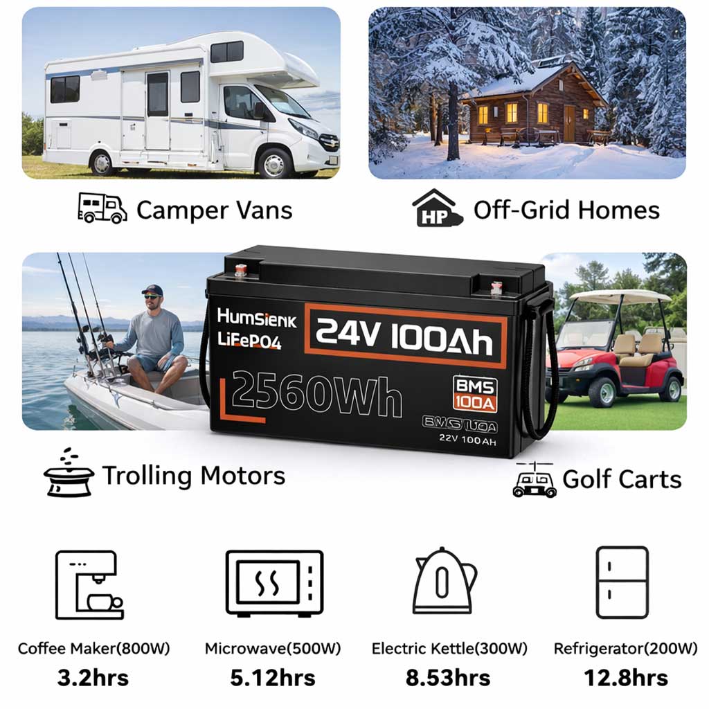 Акумулятор Humsienk LiFePO4 24V 100Ah з BMS — це довгострокова інвестиція у стабільне, безпечне та енергоефективне живлення. Він забезпечує максимальну автономність, швидке заряджання, мінімальні втрати енергії та багаторічну надійну роботу в сонячних електростанціях, автодомах, човнах і резервних енергосистемах.