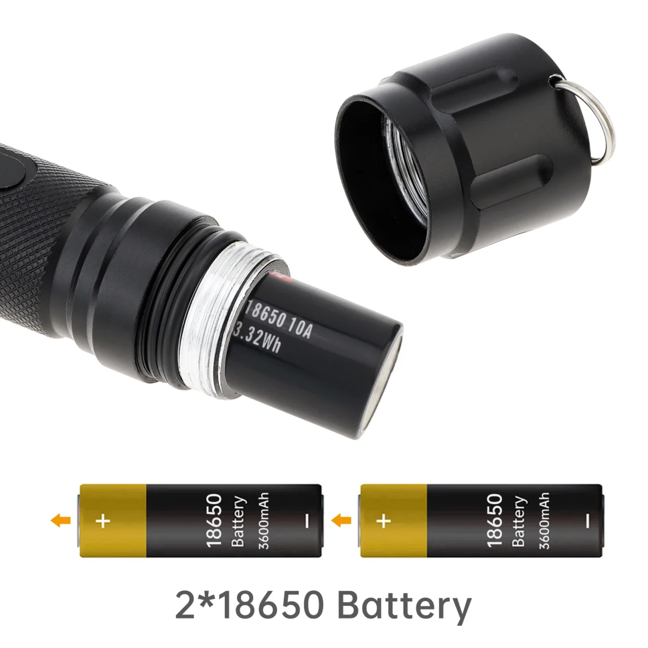 Ліхтарик працює від двох акумуляторів типу 18650, що забезпечує тривалий час роботи. Рекомендується використовувати якісні акумулятори для максимальної продуктивності.