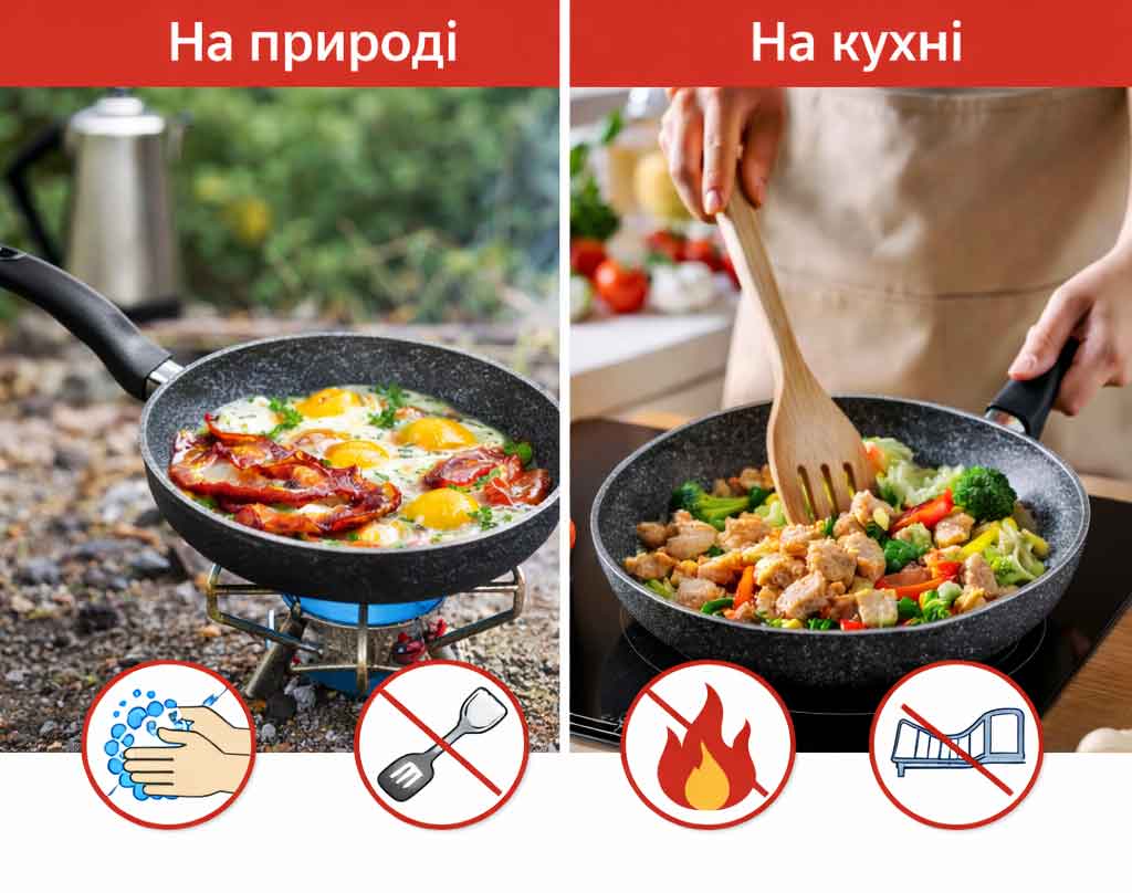- Мармурове антипригарне покриття — захист від прилипання їжі