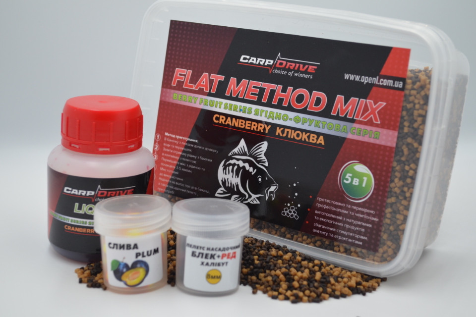 Методні пелети флет метод мікс Cranberry Carp Drive 5 в 1 — ягідно-фруктовий набір для флет методу