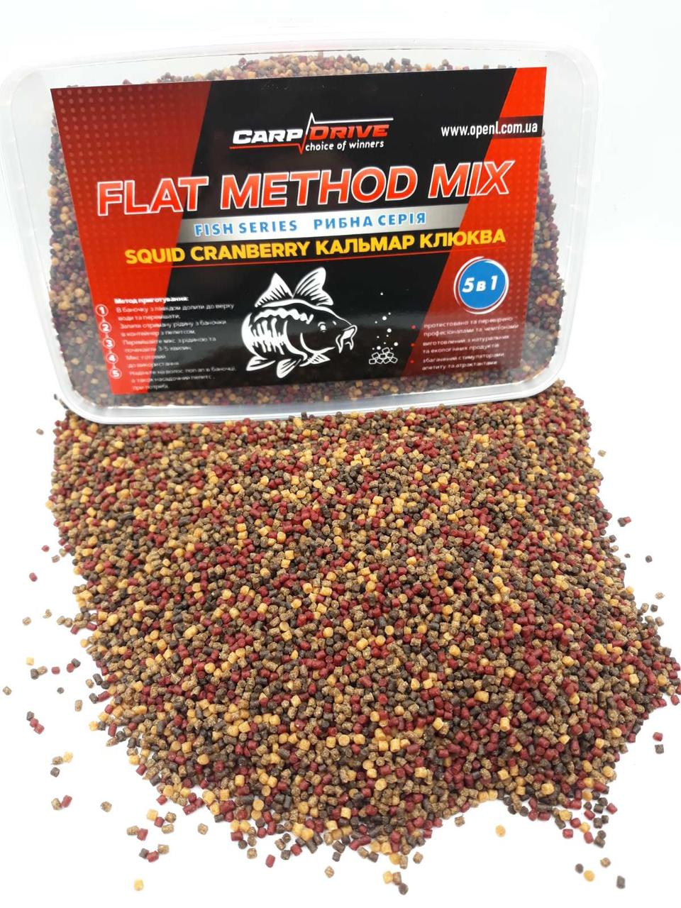 Методний пелетс флет метод мікс Squid Cranberry Carp Drive 5 в 1 ідеально підходить: