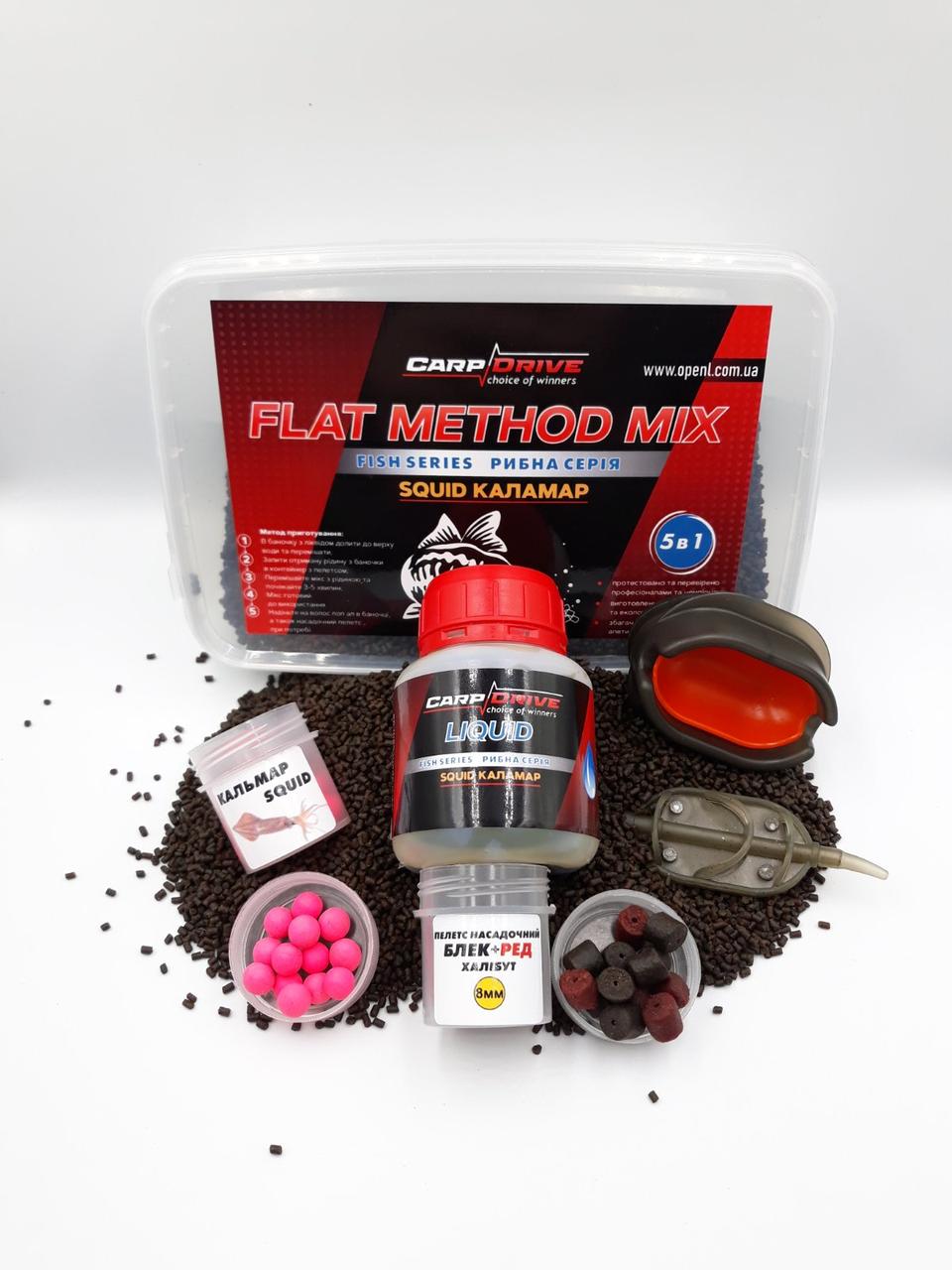 Методний пелетс флет метод мікс Squid Carp Drive 7 в 1 2 мм набір ліквід поп ап 8 мм
