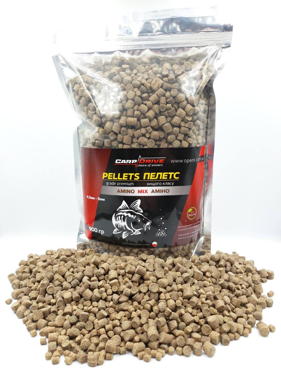 Мікс пелетсів Carp Drive Amino MIX 900 г фракції 4.5–8 мм на морській рибі та рибячому жирі для коропа і амура швидка робота у воді