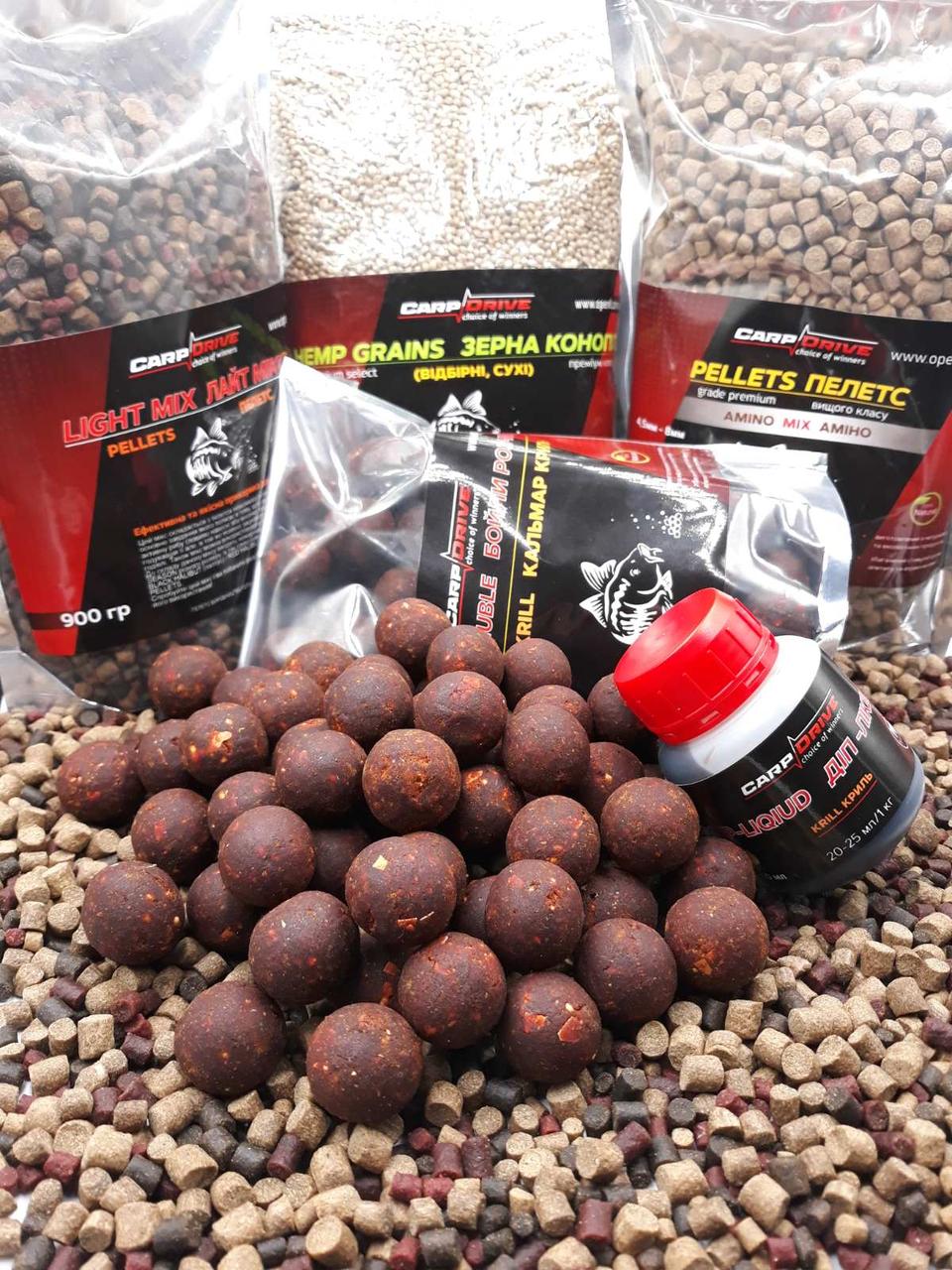 Готовий набір Carp Drive для добової риболовлі в холодній воді восени та навесні бойли Squid Krill пелетс ліквід для швидкого залучення коропа