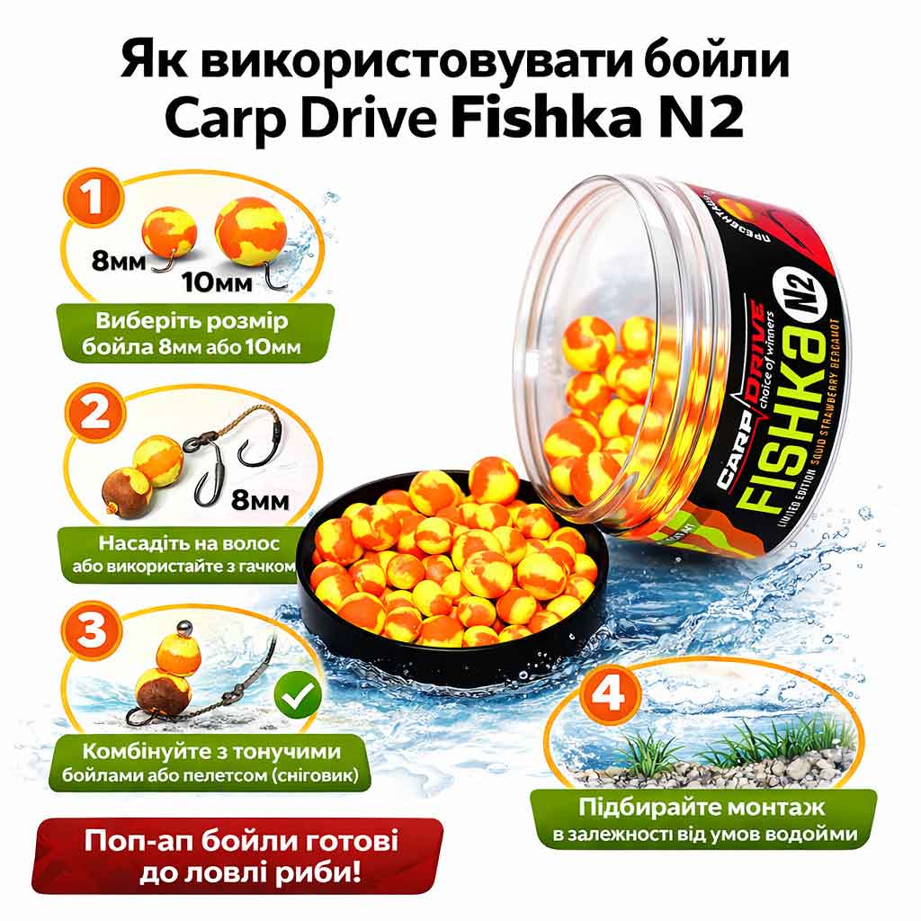 Насадка поп-ап для риболовлі бойл Carp Drive Fishka N2 8-10мм – професійний вибір для ловлі коропа