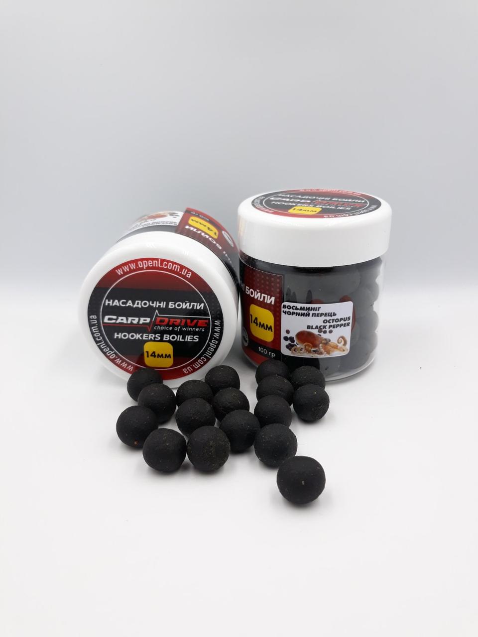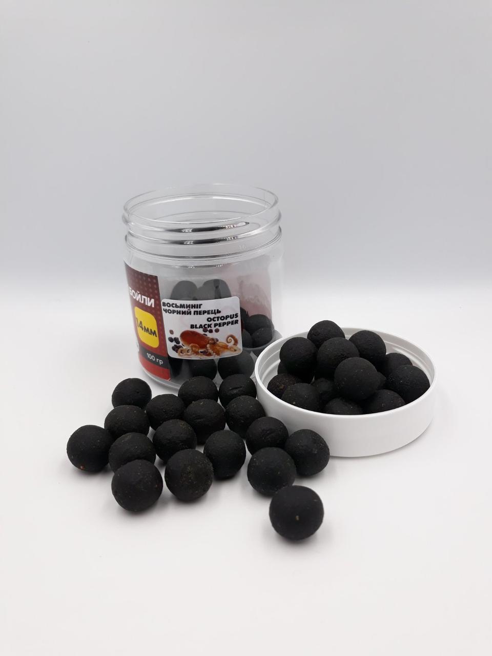 Насадкові бойли варені Восьминіг Чорний Перець 14 мм 100 г тонучі для коропа пряний аромат стимулює апетит працює у водоймах з пресингом
