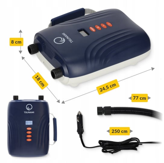 TSUNAMI CAR DAP-01 — це оптимальний вибір для тих, хто шукає надійний, швидкий і зручний насос для SUP-дошки від прикурювача з максимальним комфортом у використанні.