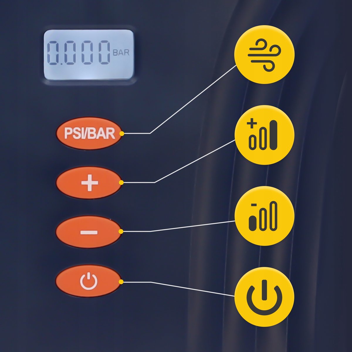 Завдяки вбудованому датчику тиску, електричний насос TSUNAMI для SUP автоматично вимикається після досягнення встановленого значення. Це запобігає перекачуванню та продовжує термін служби вашого спорядження.
