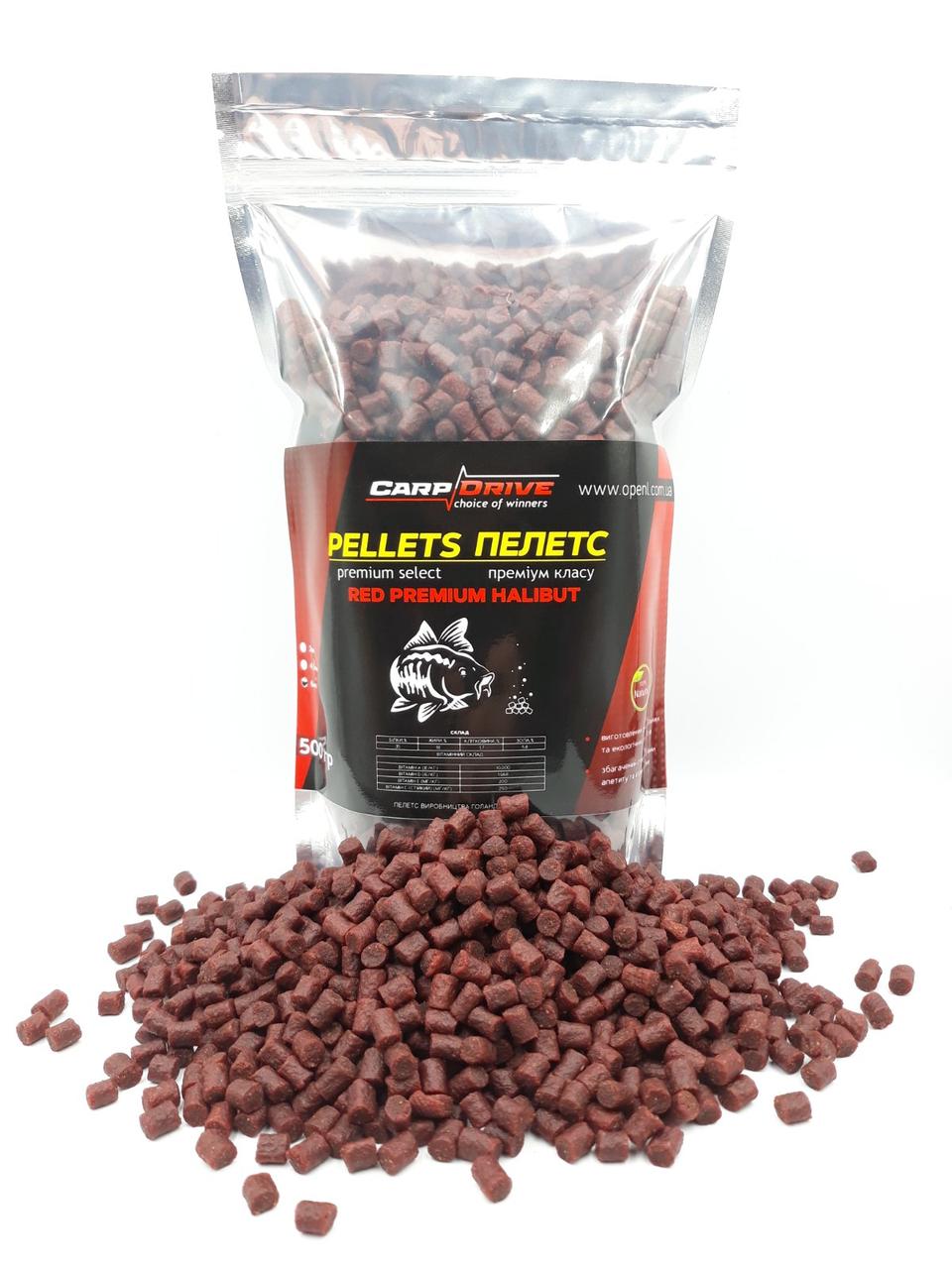 Pellets пелети Carp Drive Red Premium Halibut (преміум класу, Кріль) 6 мм 500гр Прикорм для риби RED PREMIUM HALIBUT 6 мм використовується в основному для підгодовування риби та активної лову.