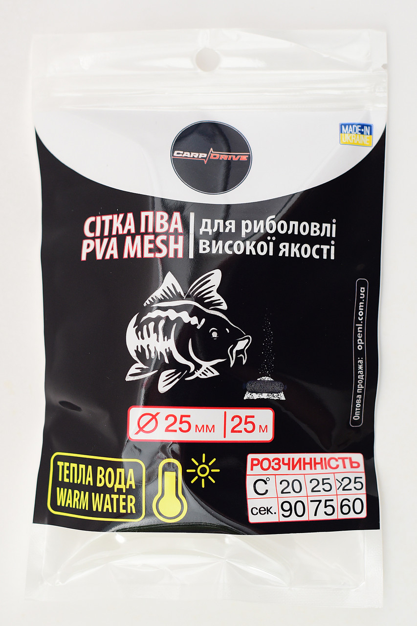 ПВА сітка Carp Drive тепла вода 25 мм 25 м — розчинні насадкові бойли, тепла вода, 25 мм для результативної коропової риболовлі. Ключові запити: бойли для коропа, насадка для риболовлі, коропова риболовля, розчинні бойли, Carp Drive.