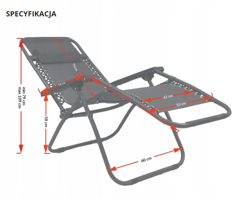 СКЛАДНЕ САДОВЕ КРІСЛО ZERO GRAVITY ORION ПЛЯЖНЕ крісло ТЕРАСНЕ крісло Ширина (коротша сторона) 67 см