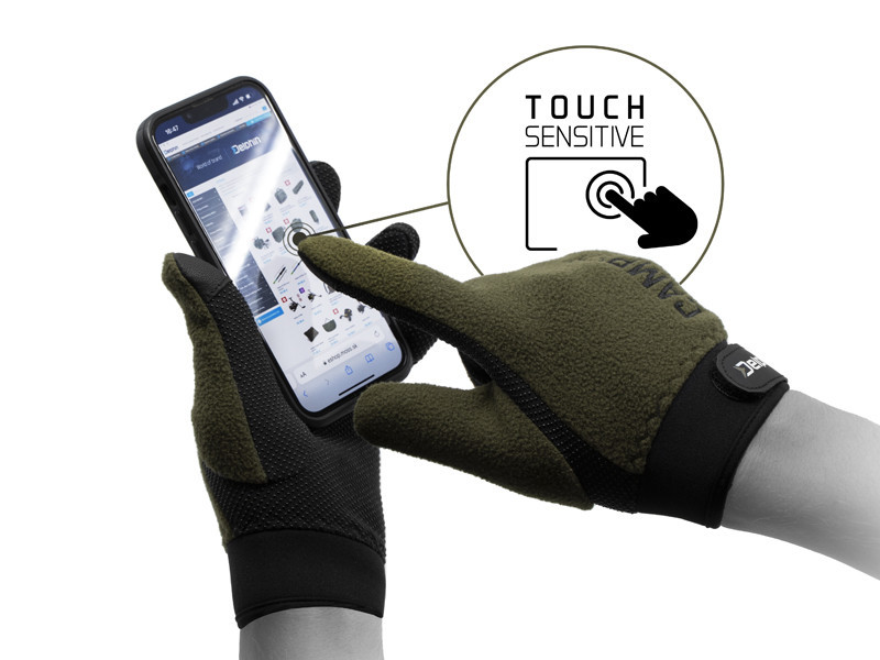 Рукавички Delphin CAMPER флісові сенсорні антиковзні липучка — насадка для коропової риболовлі.