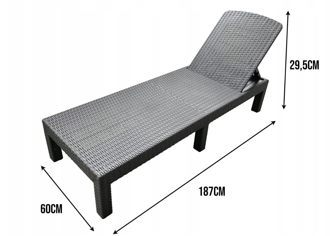 Завдяки продуманим габаритам 187 × 60 см, шезлонг забезпечує достатньо простору для комфортного лежання. Висота 29,5 см дозволяє легко вставати та підтримує правильне положення ніг під час відпочинку.