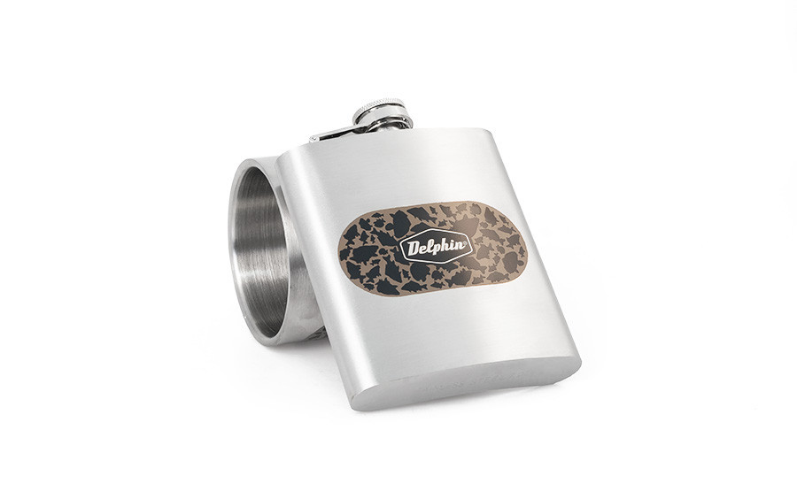 Спереду зліва великий логотип «Delphin», надрукований синім кольором.